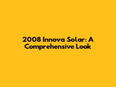 2008 Innova Solar: A Comprehensive Look