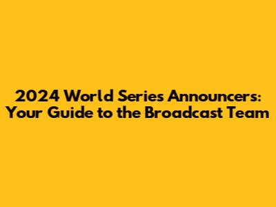 Hey baseball fanatics! The 2024 World Series is right around the corner, and you know what that means – it's time to gear up for some nail-biting games and, of course, the voices that'll be guiding us through every single pitch, hit, and run. That's right, we're talking about the World Series announcers! They are the ones who bring the drama, the excitement, and the play-by-play action to life, right in our living rooms. So, who will be in the broadcast booth this year, calling the shots, and bringing us all the action? Let’s dive deep and break down the broadcast teams. We'll explore who's calling the games, where you can watch, and maybe even some fun facts about the announcers. Get ready to know everything you need to enhance your World Series viewing experience! This guide will help you navigate who is announcing the 2024 World Series games and where you can find them.