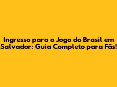 Como Comprar Ingressos para o Jogo do Brasil em Salvador?