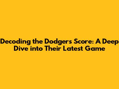 Dodgers Score Analysis: Unpacking the Numbers