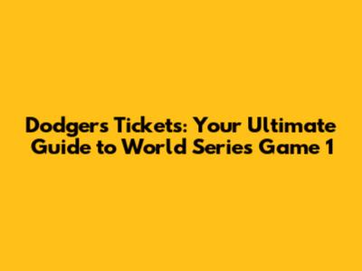 Dodgers Tickets: Your Guide To World Series Game 1