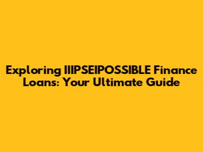 Exploring IIIPSEIPOSSIBLE Finance Loans: Your Ultimate Guide