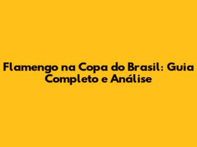 Flamengo Na Copa Do Brasil: Guia Completo E Análise