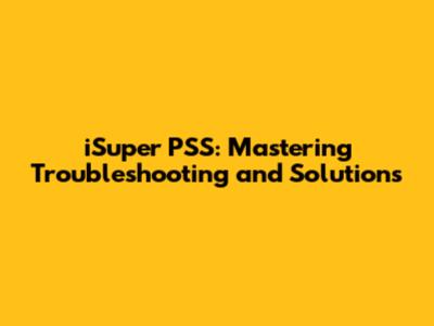 Solutions and Fixes for iSuper PSS Issues