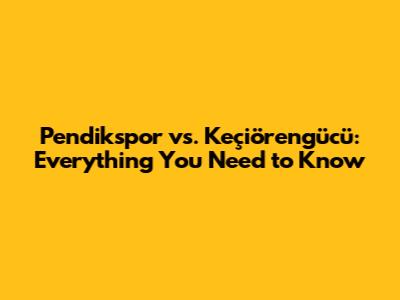Hey sports fans! Are you ready for a thrilling match? We're diving deep into the upcoming Pendikspor vs. Keçiörengücü game, covering everything from where to watch the live stream to our match prediction. Get ready to gear up because we're about to break down all the key details you need to know before the whistle blows. This match is shaping up to be a real nail-biter, so buckle up, grab your snacks, and let's get into it. We'll explore team form, analyze potential strategies, and give you the inside scoop on how to catch all the action. So, if you're looking for a comprehensive guide to this exciting fixture, you've come to the right place. We're here to ensure you don't miss a single moment of the Pendikspor vs. Keçiörengücü clash. Whether you're a die-hard fan or just looking to enjoy a good game, this is your ultimate preview. Let's get started and make sure you're fully prepared for kickoff! This guide is designed to provide you with the most up-to-date information, insightful analysis, and everything you need to enhance your viewing experience. Prepare yourselves for an in-depth look at the teams, their recent performances, and what to expect when they face off. We'll also cover the crucial aspects of where and when you can watch the game. Let's make sure you're fully equipped to enjoy every second of the Pendikspor vs. Keçiörengücü match. This isn't just about watching a game; it's about being informed and involved. So, let's jump right in and prepare for what promises to be a fantastic encounter on the field. Don’t miss out on the thrill; keep reading to get all the details and insights you need to enjoy the game to the fullest. Whether you're tuning in from home or following the scores on the go, we've got you covered. Let's get into the nitty-gritty of this match. Get ready for a deep dive that will prepare you for an unforgettable sporting experience. From team histories to player profiles, we're covering all bases so you're ready to cheer your heart out. Let the countdown begin! The Pendikspor vs. Keçiörengücü match is more than just a game; it's a spectacle.