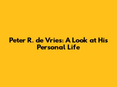 Peter R. De Vries: A Look At His Personal Life