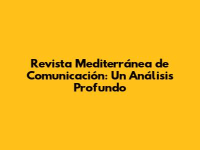 Revista Mediterránea De Comunicación: Un Análisis Profundo