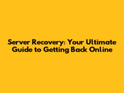 Server Recovery: Your Ultimate Guide