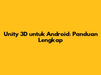 Unity 3D Untuk Android: Panduan Lengkap