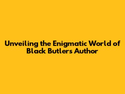 Unveiling The Enigmatic World Of Black Butler's Author